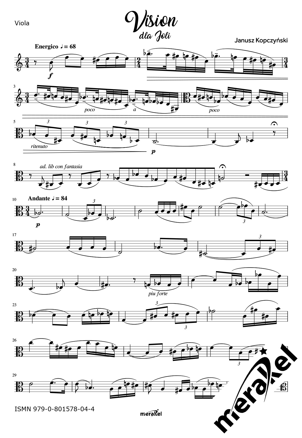 Kopczyński Janusz: "Vision" for viola solo